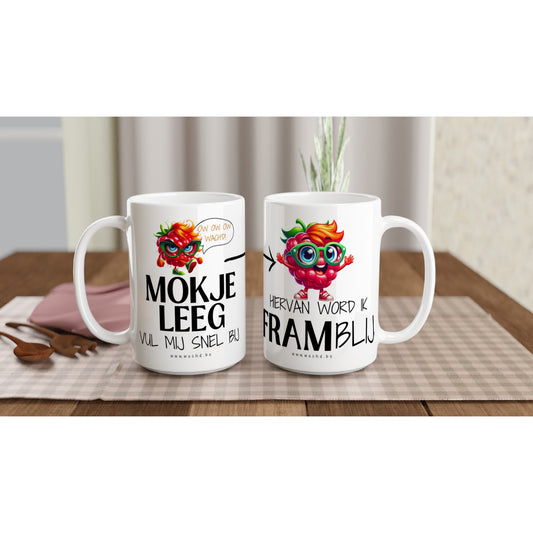 "MOKJE LEEG, VUL MIJ SNEL BIJ, HIERVAN WORD IK FRAMBLIJ" MOK (325 ml)