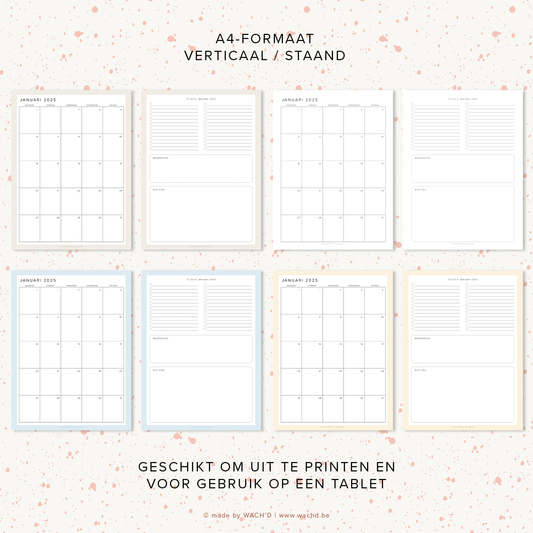 Maandkalenders Ma-Zo 2025 | A4 staand printbare pdf