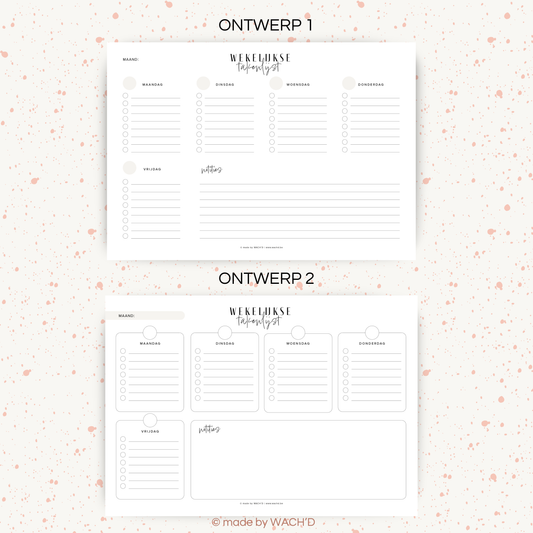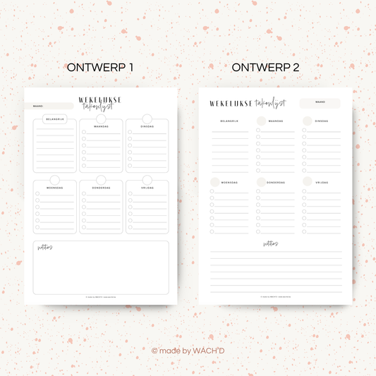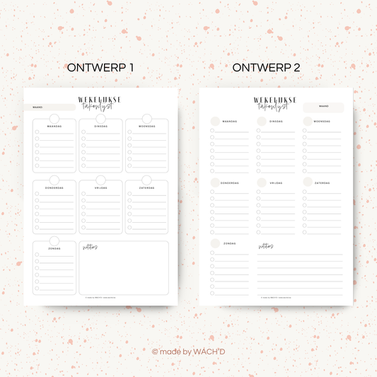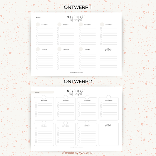 Wekelijkse takenlijst maandag-zondag (ongedateerd) | A4 staand printbare pdf