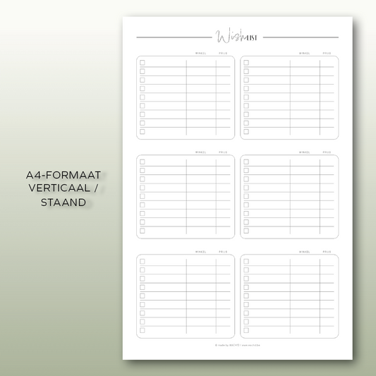 Wishlist | A4 & A5 printbare pdf