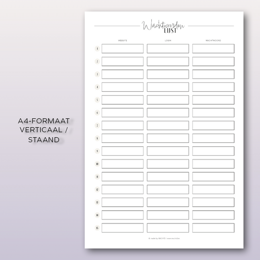 Wachtwoordenlijst | A4 & A5 printbare pdf