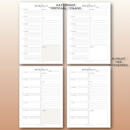 Weekplanner (ongedateerd) | A4 staand printbare pdf