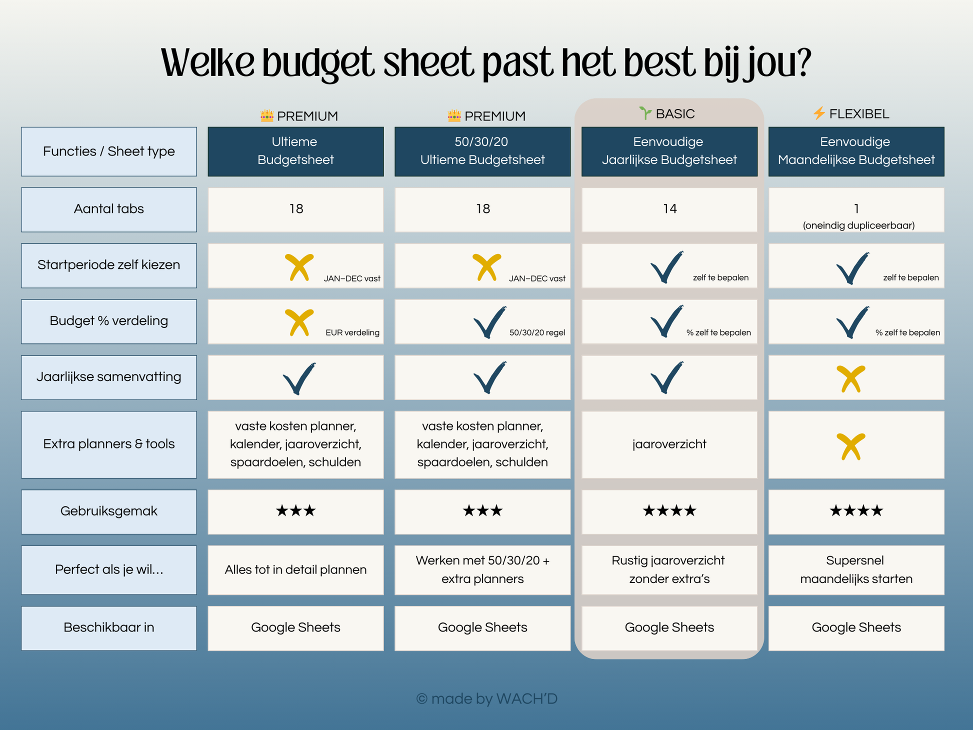 ▶ Flexibel: Pas de spreadsheet aan je eigen wensen en behoeften aan.