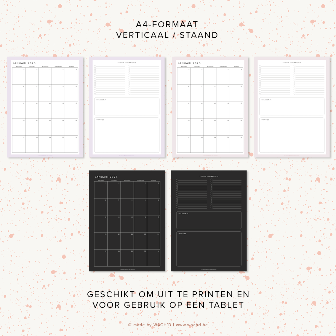 Maandkalenders Ma-Vr 2025 | A4 staand printbare pdf