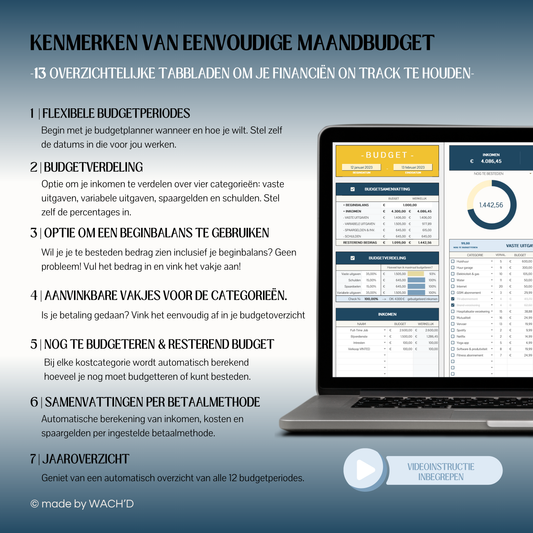 Eenvoudige Budgetplanner (1 tab) | Google Sheets | Nederlandse Budgetplanner | Blauw & Geel
