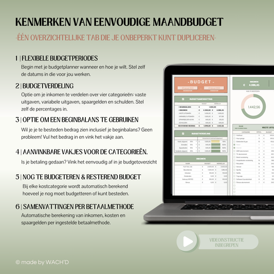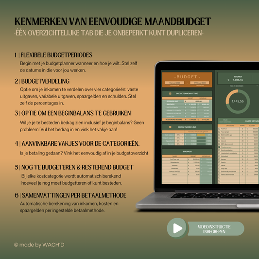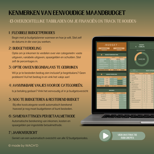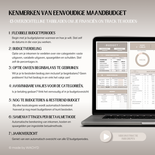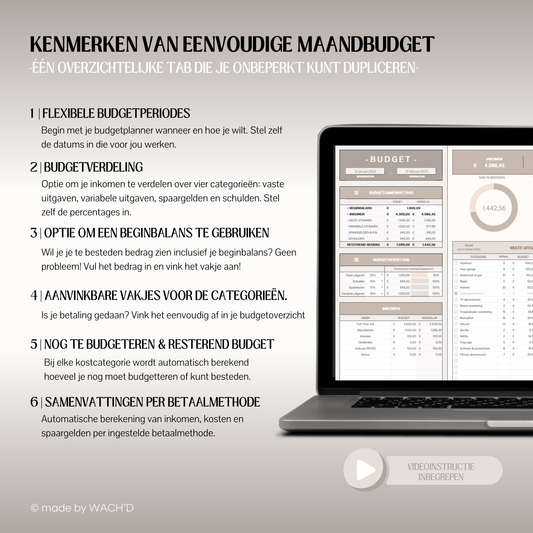 Eenvoudige Budgetplanner (1 tab) | Google Sheets | Nederlandse Budgetplanner | Bruin & Beige
