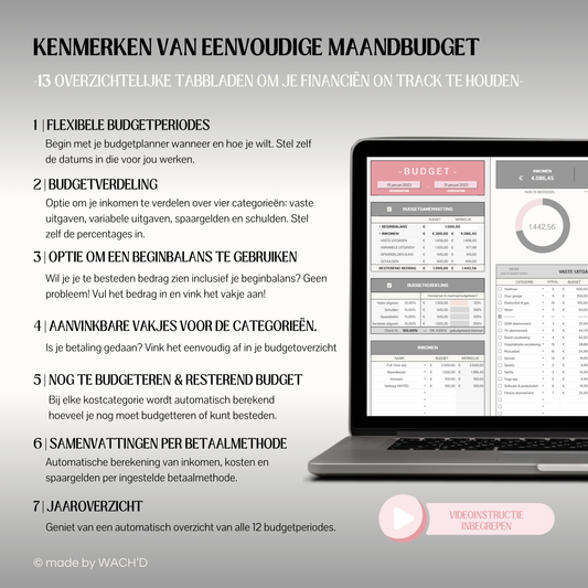 Eenvoudige Jaarlijkse budgetplanner | Google Sheets | Nederlandse Budgetplanner | Grijs & Roze