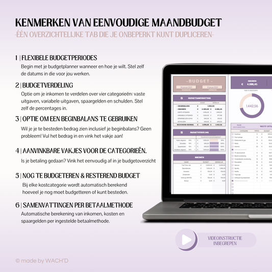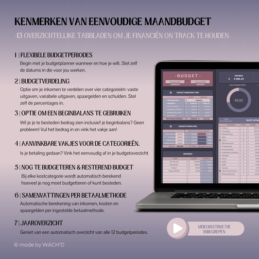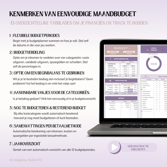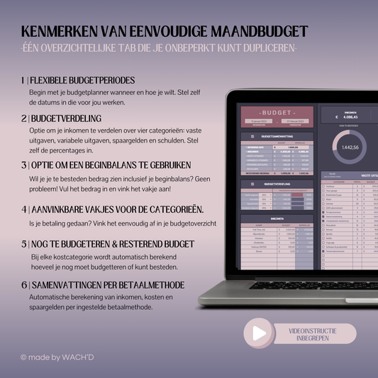 Eenvoudige Budgetplanner (1 tab) | Google Sheets | Nederlandse Budgetplanner | Paars & Roze Taupe