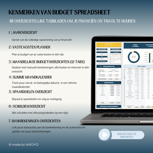Ultieme Jaarlijkse Budgetplanner | Google Sheets | Nederlandse Budgetplanner | Blauw & Geel