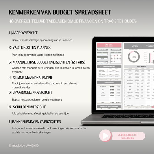 50/30/20 Ultieme Jaarlijkse Budgetplanner | Google Sheets | Nederlandse Budgetplanner | Grijs & Roze