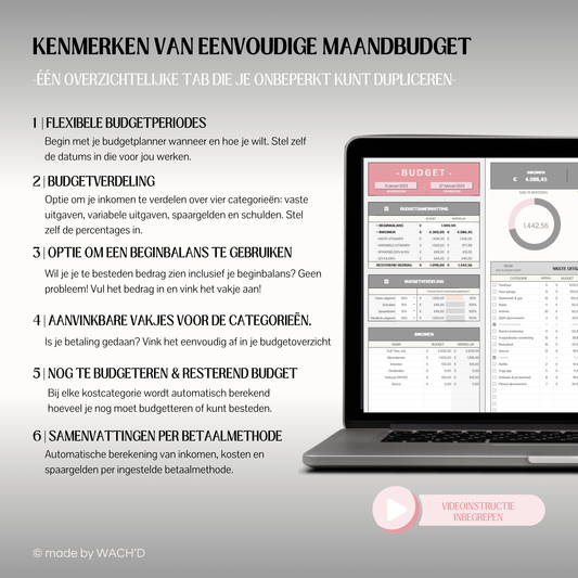 Eenvoudige Budgetplanner (1 tab) | Google Sheets | Nederlandse Budgetplanner | Grijs & Roze
