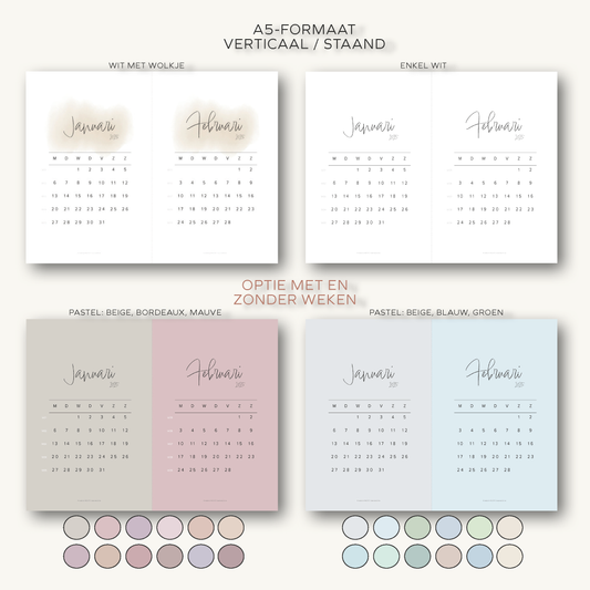 AanbiedingMaandkalenders 2025 | A5 printbare pdf
