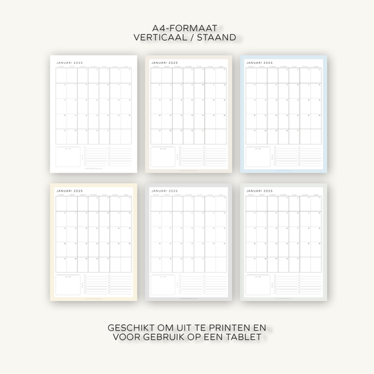 Maandkalenders Ma-Zo 2025 | A4 staand printbare pdf