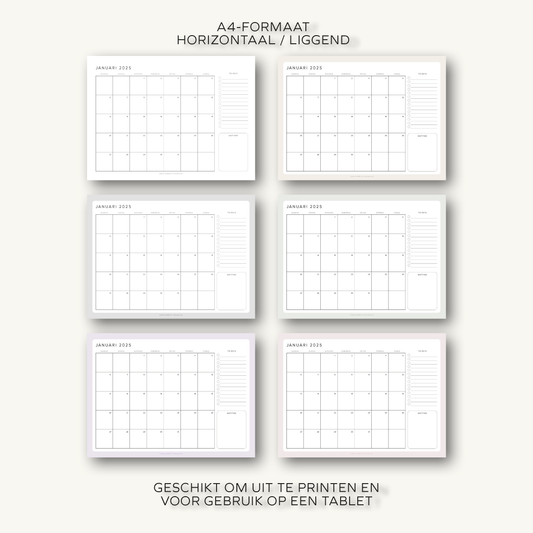 AanbiedingMaandkalenders 2025 | A4 printbare pdf