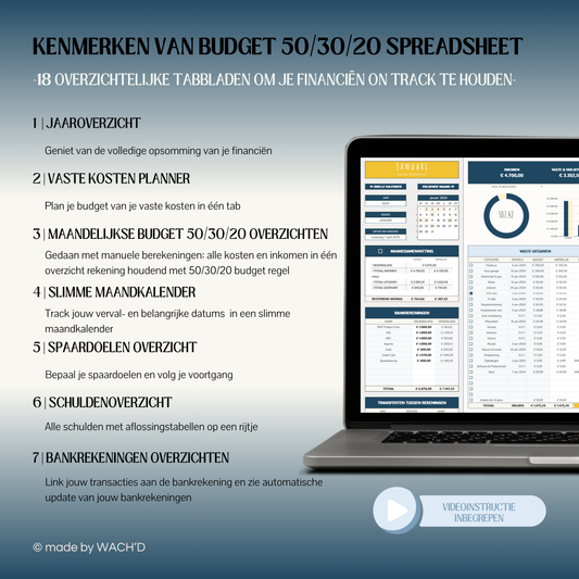 50/30/20 Ultieme Jaarlijkse Budgetplanner | Google Sheets | Nederlandse Budgetplanner | Blauw & Geel